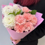 Букет из белых георгин и розовых гвоздик в Горячем Ключе